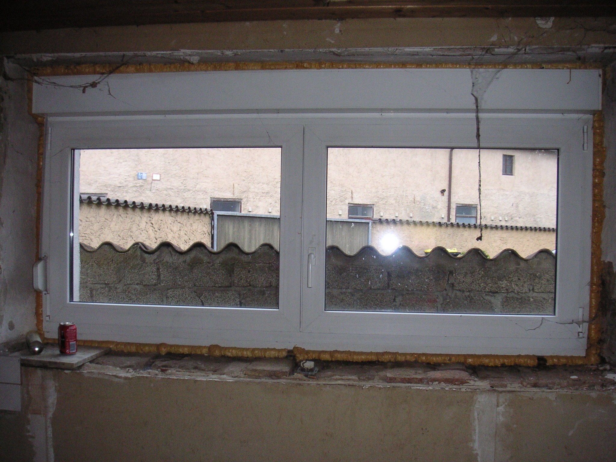 Die Vorbesitzer waren eher von der Sorte schnell und billig. Deswegen gibt es auch Baumarktfenster und ein ganz überdimensioniertes Fenster in der Küche. Natürlich aus Kunststoff.