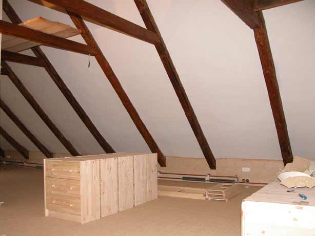 Bild 4: geölte Fichtensparren im Hobbyraum