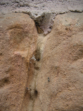 sorry mit viel Verspätung hier nun die Bilder vom bröselnden Sandstein zwecks Begutachtung. Ich hoffe sie sind aussagekräftig genug.