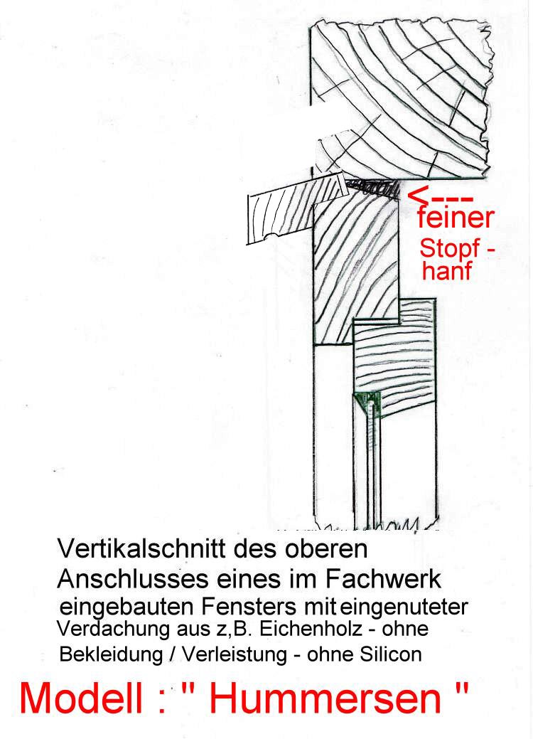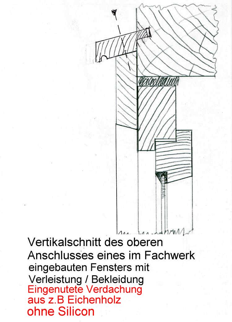 Der obere waagerechte Anschluss eines Fensters( speziell ) in einem Fachwerkhaus, sollte wasserdicht ausgebildet sein.