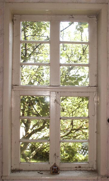 stimmt, die Fenster sind/waren (vermutlich) die Jüngsten. Das Holz der Verleistung war Fichte (vermutlich, jedenfalls Weichholz), die untere Querleiste ebenfalls. Das Original ist noch vorhanden, wenn auch nicht mehr einbaufähig. Fensterrahmen und Flügel waren Eiche.