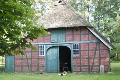 Wir haben jetzt ein schönes Objekt hier gefunden. Auf einem schönen Grundstück mit Scheune. Das Haus ist von 1871, mit Wohnteil und alter Tenne. Es muß sehr viel gemacht werden, um es überhaupt bewohnen zu können. Die eine Seite des Reetdaches muß erneuert werden. Der Eigentümer meinte, es müsse komplett "entkernt" werden.