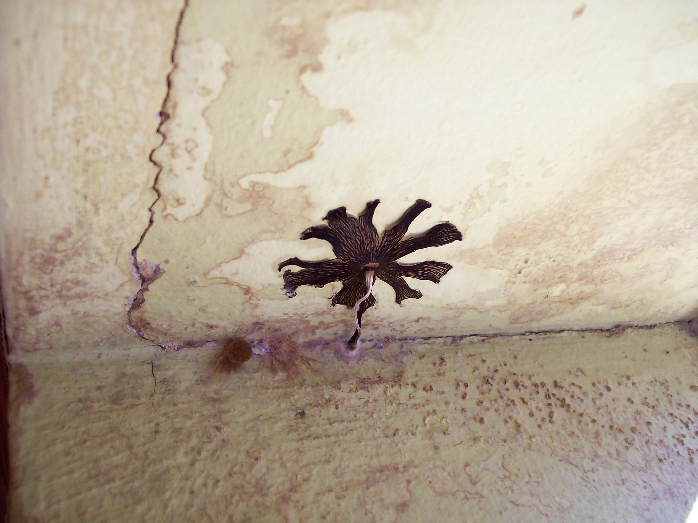 Hallo, vielleicht kann mir jemand etwas über dieses Gebilde, an einer feuchten Fensterlaibung wachsend, erzählen. Vor ca. 4 Wochen konnte ich nur die kleinen bräunlichen "Warzen" entdecken, habe eine größere entfernt, leider damals kein Foto gemacht. In der Zwischenzeit ist diese "Blüte" gewachsen. Kann auch nach längerer Suche im Internet nichts Vergleichbares finden, eine Art Blättling vielleicht??? Viele Grüße an alle